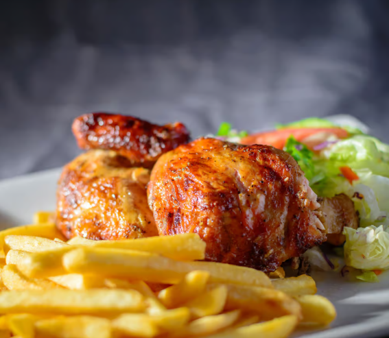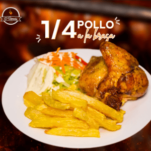 1/2 Pollo a la Brasa + Papas Fritas + Ensalada + Cremas